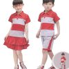 Áo đồng phục của bé trai và bé gái sử dụng 2 màu phối là đỏ và trắng, phối so le nhau. Bộ đồ này giúp các bé trông khỏe khoắn và xinh xắn hơn.